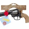 Mit der schwarz-braunen Spielzeugpistole „Interpol 38“ kommen große und kleine Pistolenfans voll auf ihre Kosten. Egal ob Polizist oder Agent – diese 23 cm lange Spielzeugpistole verleiht dem Faschingskostüm den letzten Schliff. Die 12-Schuss-Pistole aus Zink und Kunststoff verfügt über einen handlichen Pistolengriff. Als Munition eignet sich am besten die 12-Schuss Ring-Amorces Typ Wicke EURO CAPS® des Herstellers Sohni-Wicke. Dank der hochwertigen Verarbeitung ist langes Spiel, Spaß und Action garantiert. Nicht geeignet für Kinder unter 3 Jahren.