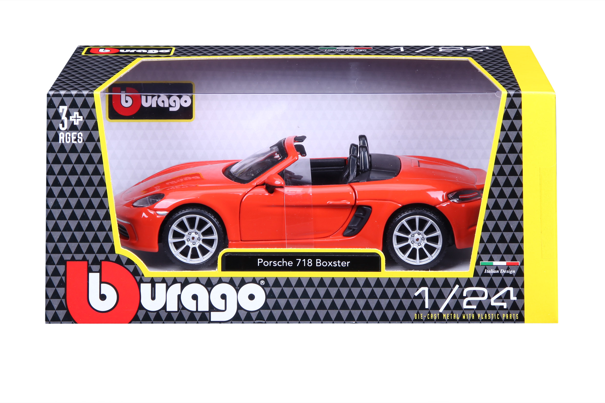 Der Mittelmotor-Sportwagen für die Straße! Bburago hat den Porsche 718 Boxster als Metallspritzgussmodell im Maßstab 1:24 mit detailgetreuem Interieur sowie beweglichen Türen nachgebildet. Das orange Sammlerauto ist ein Muss für jeden Porsche-Liebhaber und ein Blickfang für die Vitrine! Als Spielzeug eignet sich der Modellwagen für Kinder ab 3 Jahren.