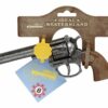 Mit der silber-schwarzen Spielzeugpistole „Ruby“ kommen große und kleine Pistolenfans voll auf ihre Kosten. Egal ob Polizist oder Agent – diese 13 cm lange Spielzeugpistole verleiht dem Faschingskostüm den letzten Schliff. Die 8-Schuss-Pistole aus Zink und Kunststoff verfügt über einen handlichen Pistolengriff mit kräftiger Maserung. Als Munition eignet sich am besten die 8-Schuss Ring-Amorces Typ Wicke EURO CAPS® des Herstellers Sohni-Wicke. Dank der hochwertigen Verarbeitung ist langes Spiel, Spaß und Action garantiert. Nicht geeignet für Kinder unter 3 Jahren