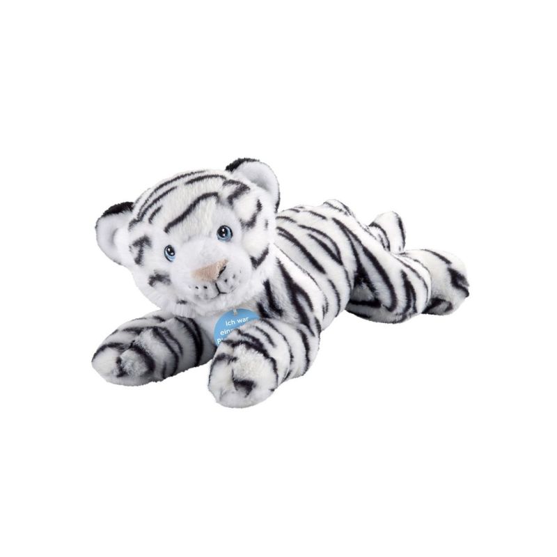 Mit seinen treu blickenden Augen sieht der süße, weiß-schwarze Tiger Dich an und möchte von Dir gekuschelt werden. Das superweiche Plüschtier wurde zu 100% aus recycelten PET-Flaschen hergestellt. Vom Plüsch über die Füllung bis hin zu den zahlreichen Details und gestickten Augen – hier besteht alles aus dem recycelten Material. Für die Produktion des 33 cm großen Stofftiers werden etwa 17 PET-Flaschen benötigt. Das liegende Kuscheltier ist bei 30 °C (Schonwäsche) waschbar und eignet sich ideal als Geschenk, Maskottchen oder Trostspender.